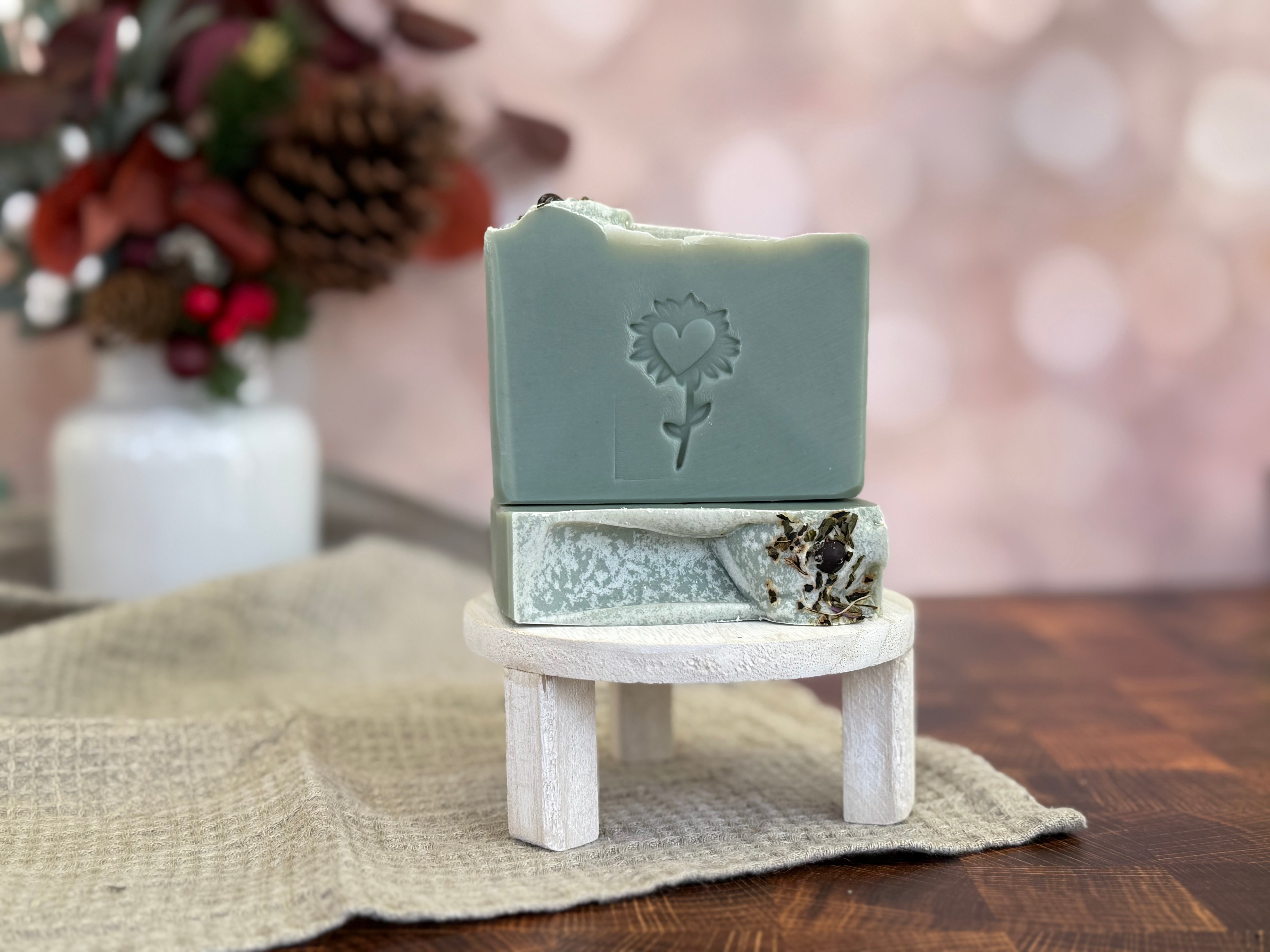 Cool, crisp, and quietly grounding — Juniper Mist captures the feeling of breathing in fresh morning air in a mountain meadow. Made with aloe and French green clay, this bar gently cleanses and refreshes while leaving skin soft and balanced. The creamy base of tallow and plant-based colorants gives it a naturally silky lather and subtle earthy hue.