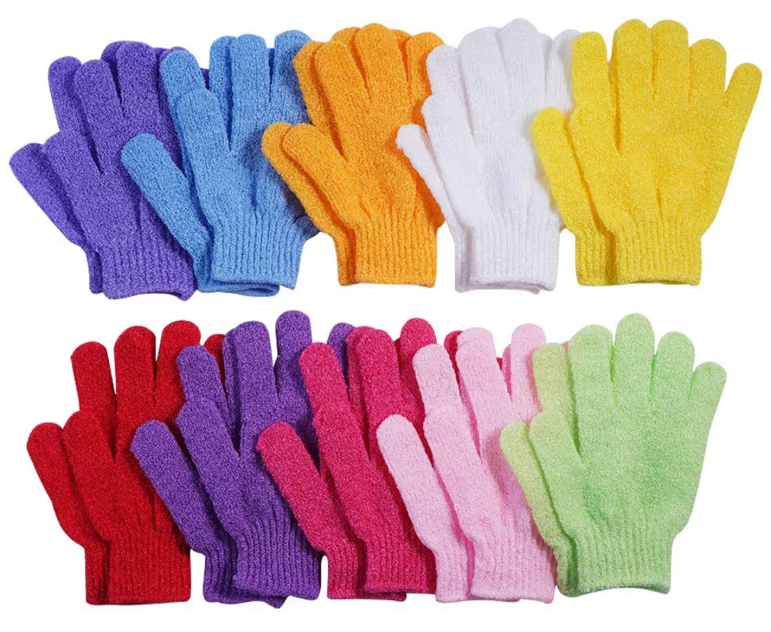 These Exfoliating Bath Gloves are made from 100% nylon to gently buff away dry, dull skin and reveal a smoother, refreshed glow. Use them with your favorite soap to create a rich lather that deeply cleanses while stimulating circulation. Perfect for everyday use, these gloves help keep your skin soft, polished, and revitalized. Machine washable and reusable for an eco-friendly addition to your bath routine. Do not use heat to dry.