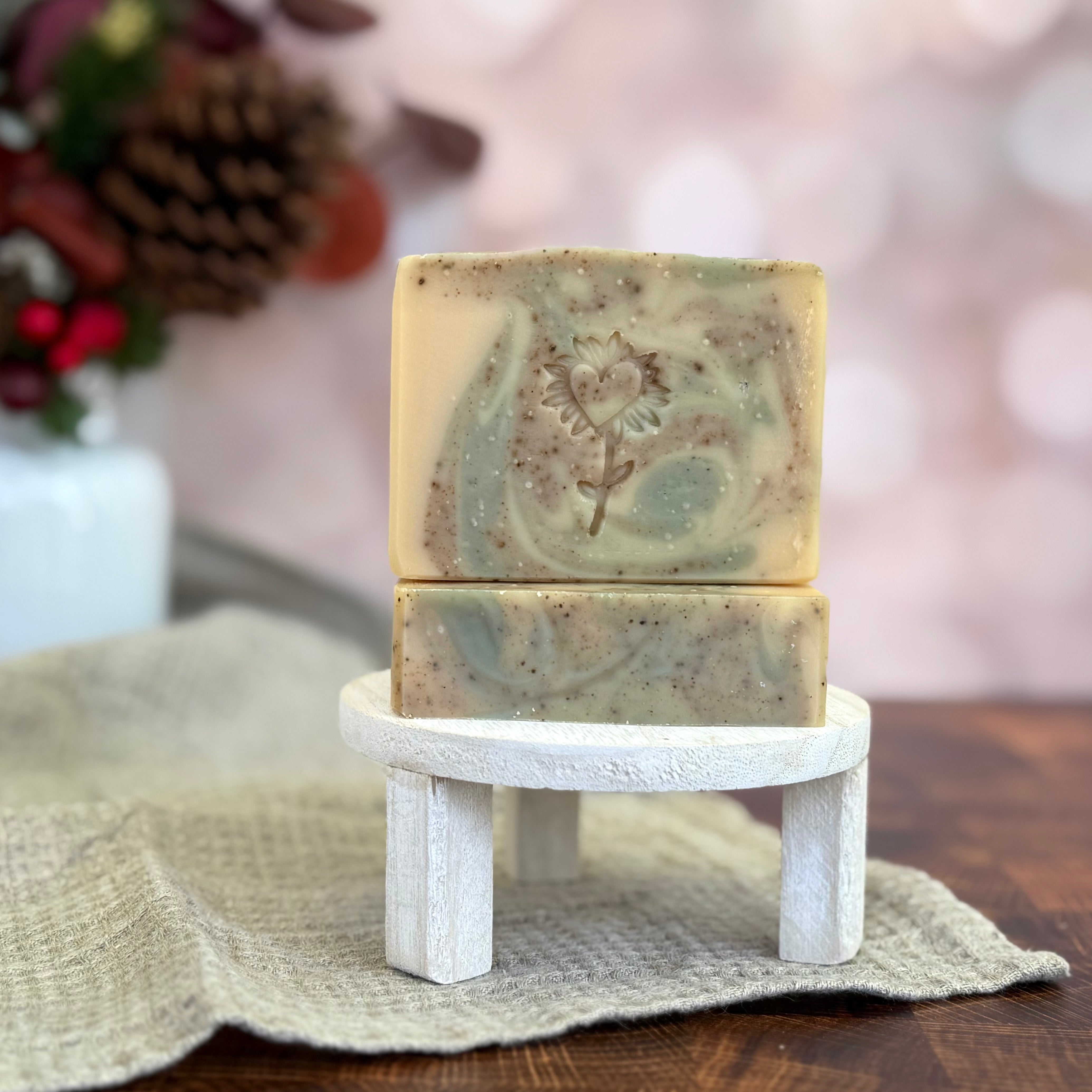 Go bare, go smooth, go In The Buff. This invigorating exfoliating bar is crafted with walnut shell powder, ground coffee, and green zeolite clay to gently polish and renew the skin. Goat milk lends a creamy conditioning lather that soothed while you scrub. The warm, complex aroma of lavender, copaiba balsam, bergamot, and black pepper essential oils blends herbal calm with subtly spice - grounding, energizing, and quietly addictive.